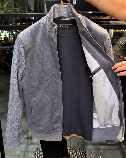 - Design Style: Adopts a classic bomber jacket silhouette with a stand - up collar for a neat and stylish look. The sleeves feature cable knit detailing, creating a material contrast with the solid - colored main body, adding a retro texture and layered details. The overall style is casual yet refined.